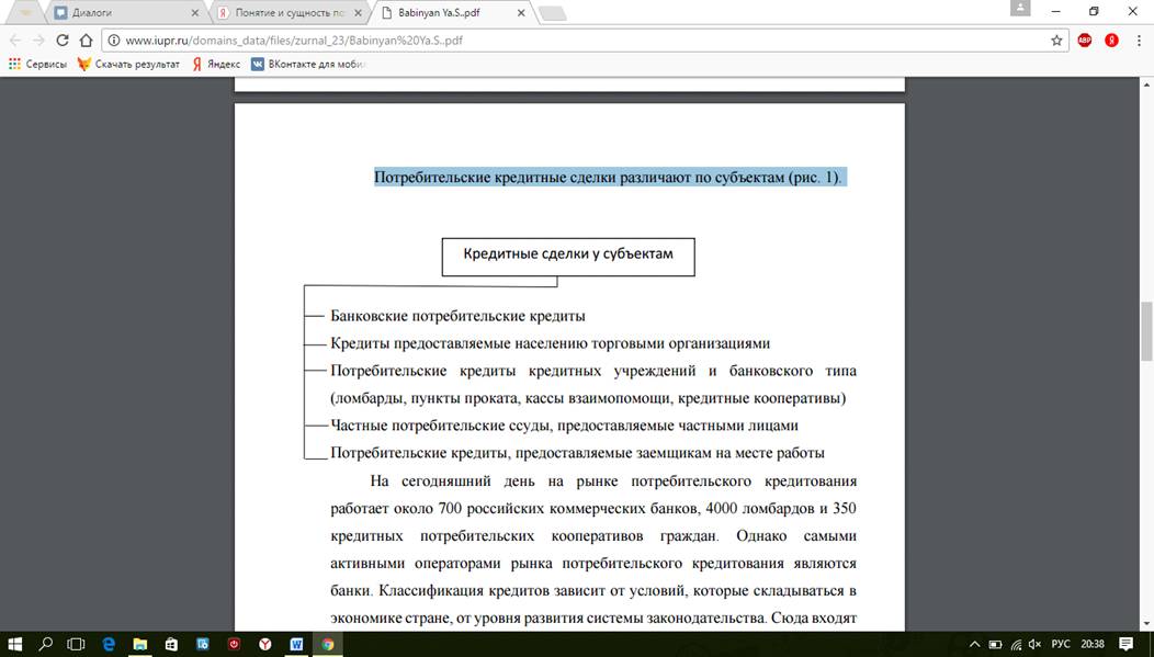 потребительского кредита // Актуальные проблемы гуманитарных и естественных
