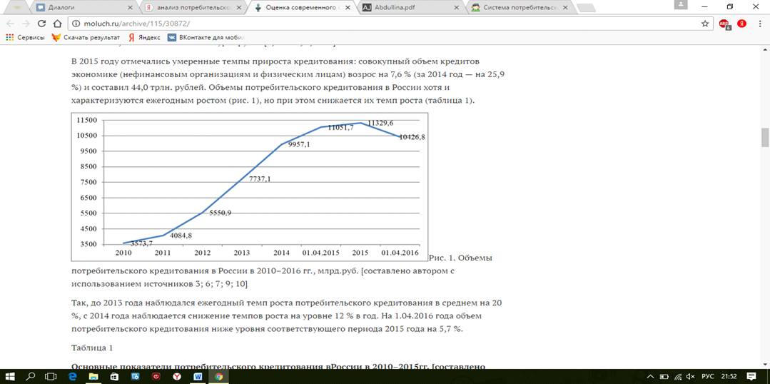 потребительского кредитования в России // Молодой ученый. - 2016. - №11. - С.