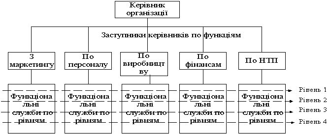 функціональних відділів (цех, склад, магазин) і середньої ланки (керування самими