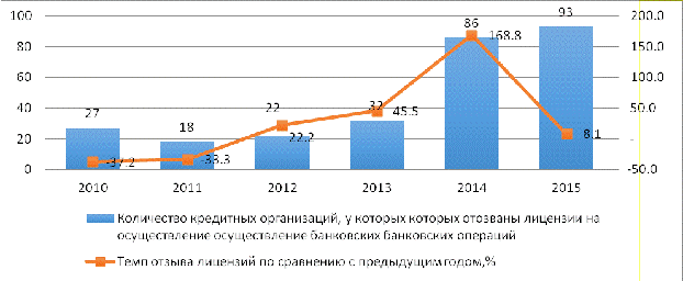 Рисунок 1. Темпы отзыва лицензий в банковском секторе РФ за 2010-2015