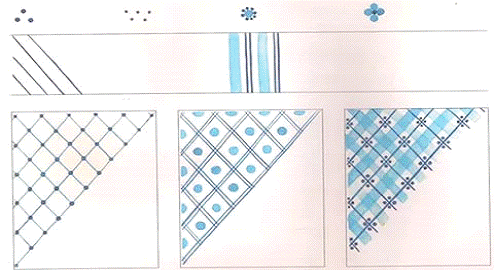использование трех основных цветов белого составляющего фон изделия, синего и