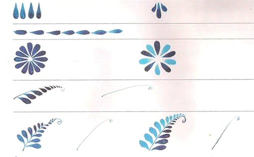 элемента - завитки, волны и т.д.: базовые узоры гжельской росписи. При этом