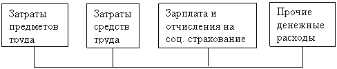 экономических элементов : затраты предметов труда, затраты средств труда и заработная