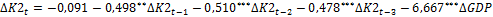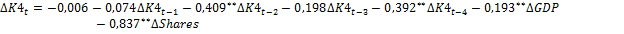 - 8 Отклик прироста k4 на шок в приросте курса доллара