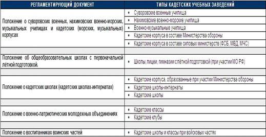 многом: различные виды кадетских корпусов, появление кадетских классов и школ,