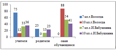 учащихся седьмых классов, 6 учащихся и 7 родителей учащихся десятых классов, а