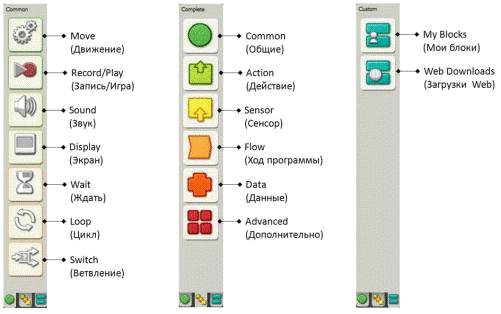 программирование путем передачи готовой программы в микрокомпьютер NXT.