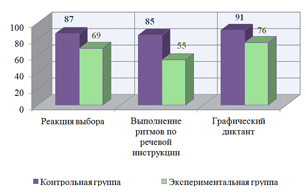 Результаты исследования слухомоторной координации (%)