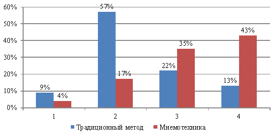 использования мнемотехнических приемов в процессе обучения лексике на уроках