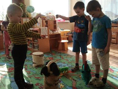 приемы: внезапное появление театральной куклы или педагога в костюме