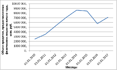 кредитов, выданных физическим лицам, и спрогнозировать значение показателя на