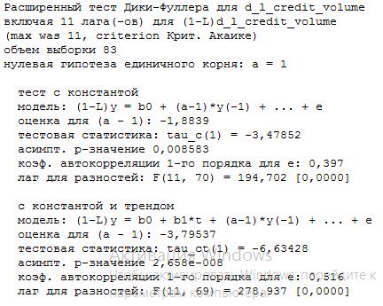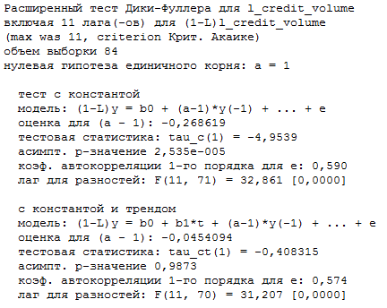 Рис. П2. Расширенный тест Дики-Фуллера для логарифма объема ипотечных