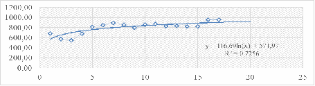 аппроксимации 9,9 %, что свидетельствует о точности подобранной модели;