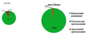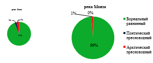 водотоках преобладают представители бореального равнинного комплекса, по