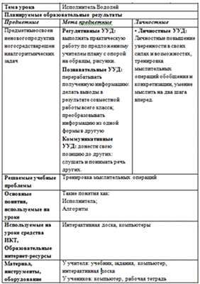 исполнителей при изучении алгоритмизации младшими школьниками.