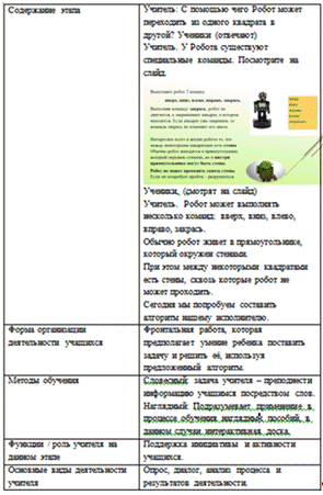 изучения алгоритмической линии в курсе информатики в начальной школе;