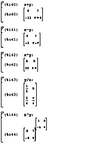 Поэлементное сложение, вычитание, умножение и деление матриц,