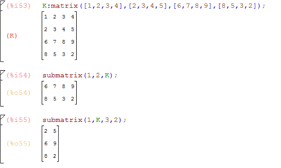 качестве параметров следуют номера удаляемых строк, исходная матрица, номера