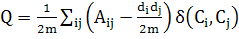 количество ребер, лежащих внутри сообществ велико, а ребер вне сообществ мало.