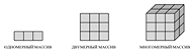 Существуют несколько видов массивов: одномерный, двумерный и многомерный
