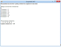 do(a[i]:4);:=0;i:=1 to n do:=s+a[i];;(fsBold);('Суммаэлементов = ',s);.