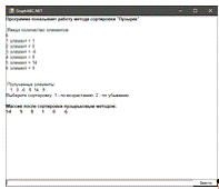 begin(fsBold);('Программа показывает работу метода сортировки