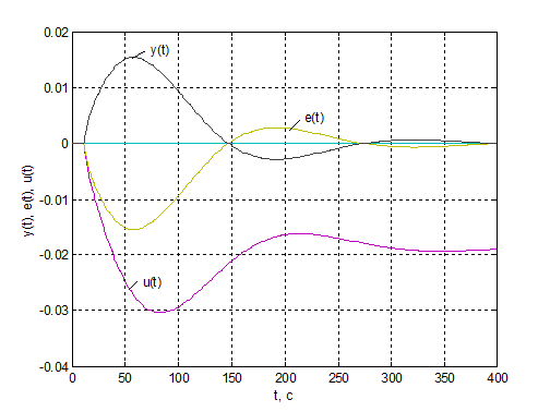 одноконтурній АСР з неперервними регуляторами при відпрацюванні сигналу