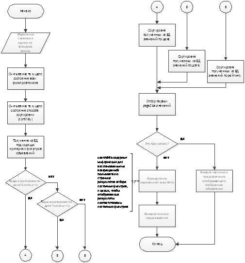 ресурсов выделим два блока: блок объявлений с фильтрами поиска, отзывами,