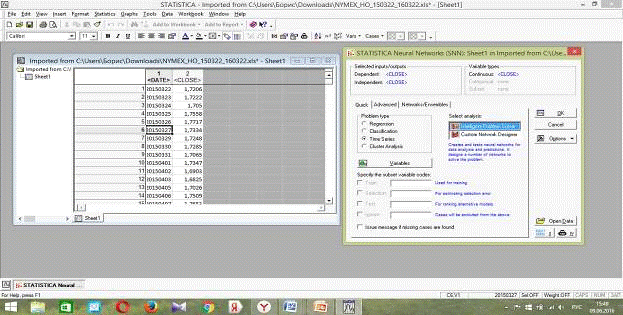 После идентификации процесса построения сетей появляется окно, во вкладке «Quick»