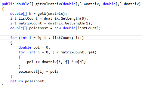 критериев. Расчет производится по формуле 3. Результаты вычислений: