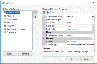 налаштовується заданням значень декількох властивостей. Як джерело даних можуть