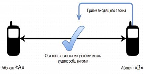 звонок. Оба пользователи могут обмениваться голосовыми сообщениями.