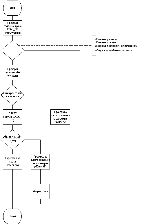 "Проверяем: (1)подана и команда управления на кран,(2)запущен