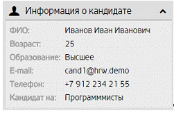 функционал ориентирован на ведение и поддержание базы данных кандидатов.