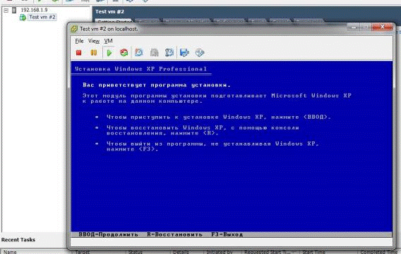 установленным vSphereClient был установлен компакт-диск с WindowsXPProfessionalSP-2,