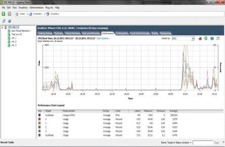 Рисунок 39 график загрузки ЦП виртуальными машинами