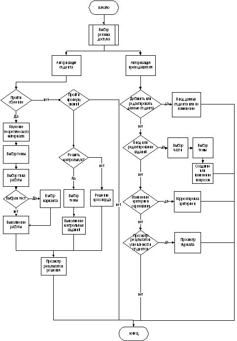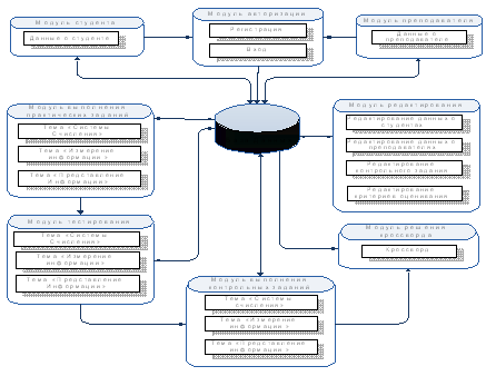 преподавателя, модуль студента, модуль авторизации, модуль выполнения