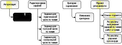 заданий, модуль решения кроссворда, модуль редактирования для преподавателей.