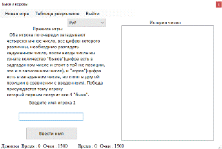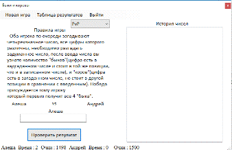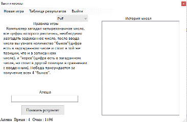 == 0) listBox1.Items.Add(textBox1.Text + " Быки: " +