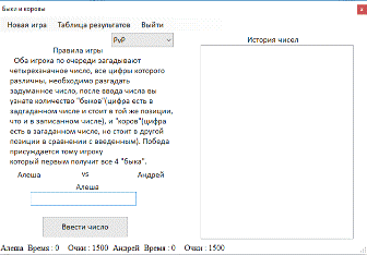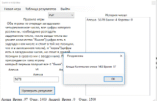+ textBox3.Text + " Быки: " + countbulls + " Коровы: " +