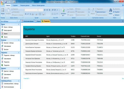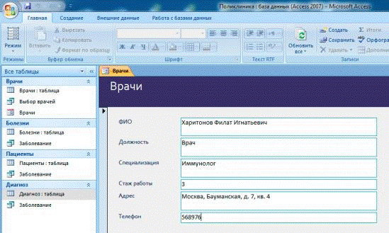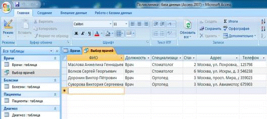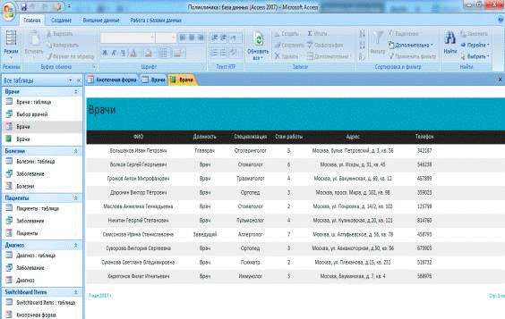 Информация о врачах, содержащаяся в базе данных, позволяет провести