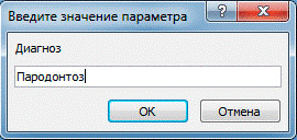 Заболевание - запрос с параметром, обеспечивающий возможность пользователю