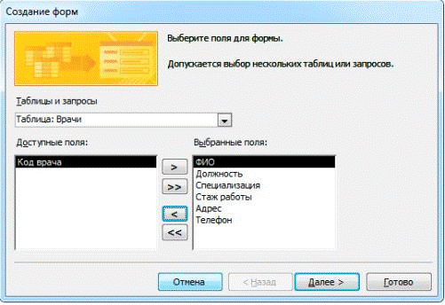 Рисунок В.1. Создание формы для таблицы Врачи