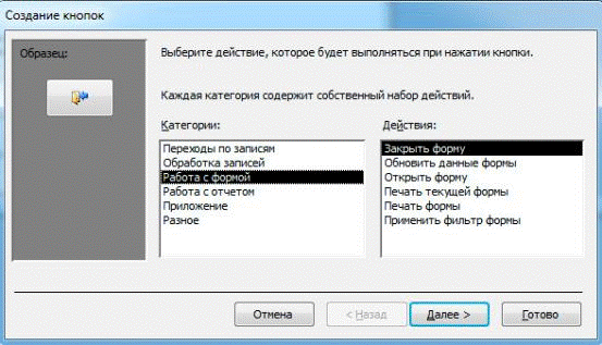 Рисунок В.3. Выбор действия для кнопки выхода из формы