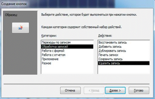 Рисунок В.5. Выбор действия для кнопки удаления записи из таблицы