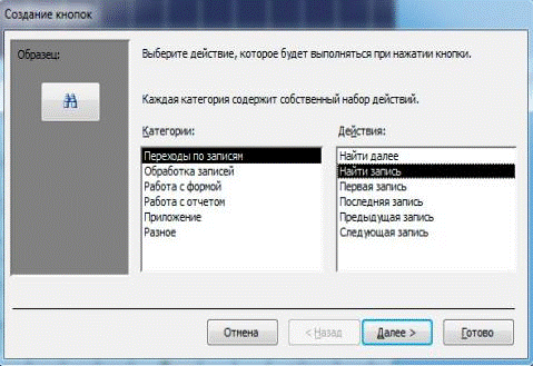 Рисунок В.6. Выбор действия для кнопки поиска записи