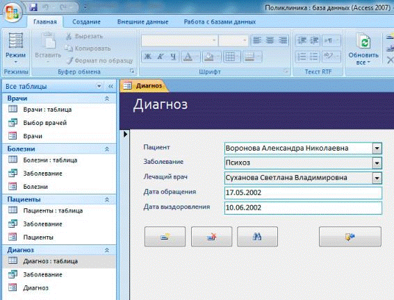Рисунок В.12. Создание формы Диагноз