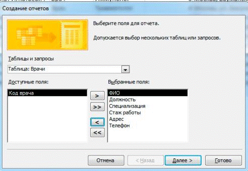 Рисунок Г.1. Создание отчета Врачи