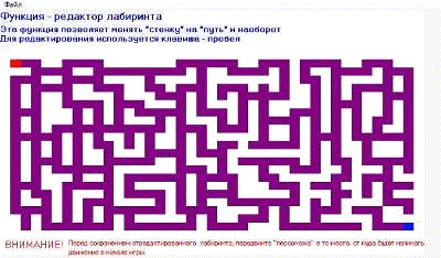 лабиринта, при нажатии в главном меню на кнопку «Редактировать лабиринт».