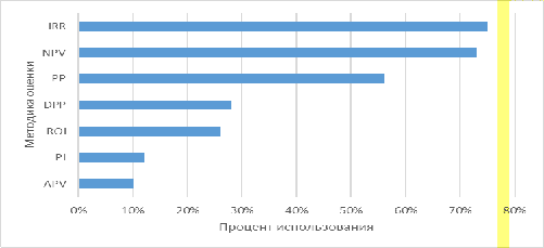 Таким образом, наиболее популярными считаются методы оценки IRR, NPVи PP.